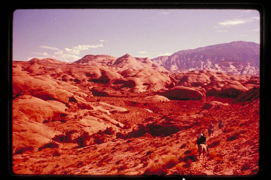 Up into Surprise Valley from the trail entering it from the Bald Rock Creek side. Navajo Mountain at top