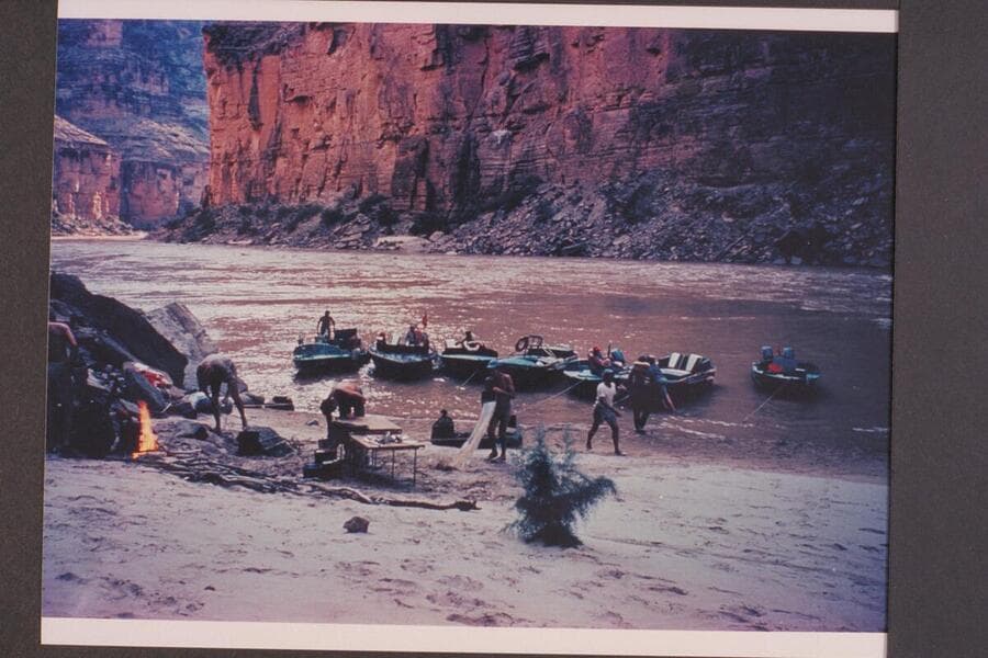Mooring at camp above The Anvil, Mile 178; approximately 36,000 cfs