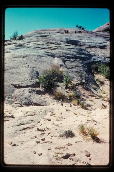 Pack string working down the bald rock into basin east of Moepitz Airfield. The return over this trail appears in 6010 GNCN 73.18.32 and 73.18.33