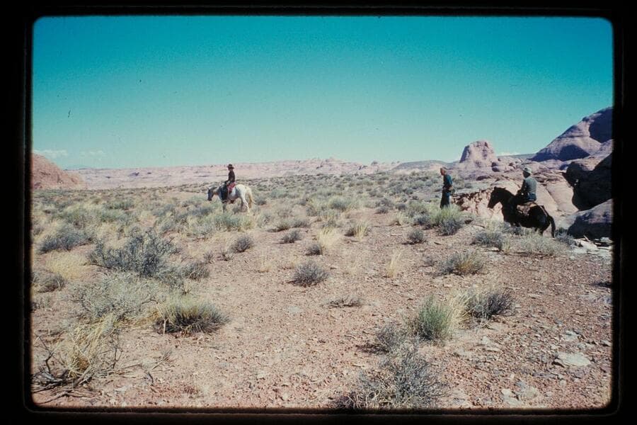 Tobe Owl rides across Moepitz Airfield. The area is so flat, a pliot from Flagstaff thought he could land there which does not seem to be unreasonable