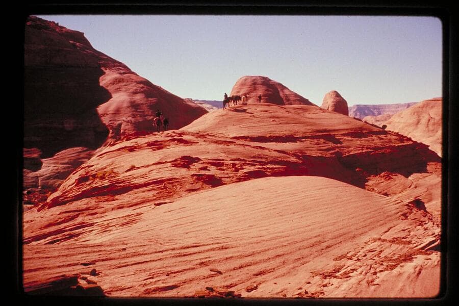 Tobe Owl climbs trail out of Moepitz Canyon between Moepitz Airfield and the basin north of Butte 5014