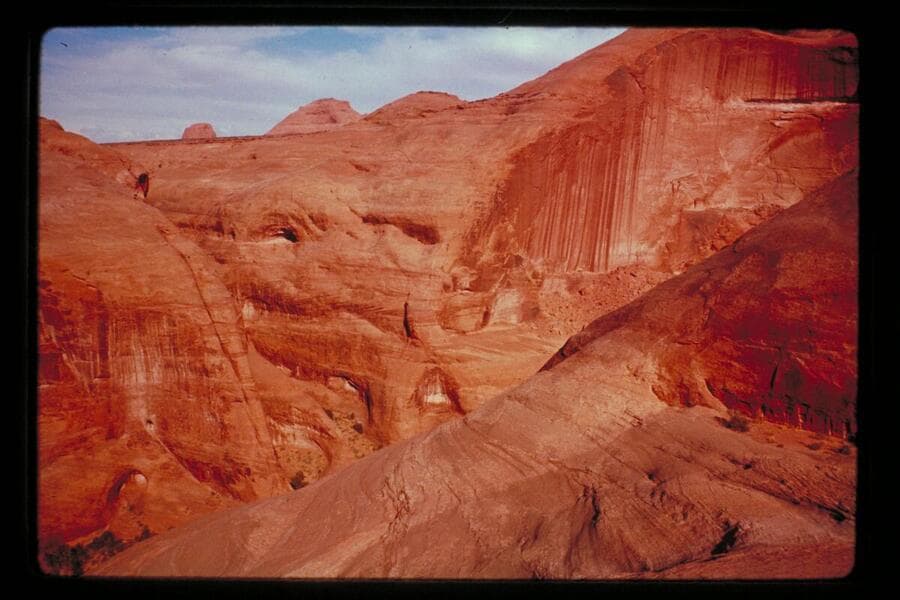 Up the canyon of the drainage which enters the river at Mile 71.5. Moepitz Airfield is upper left