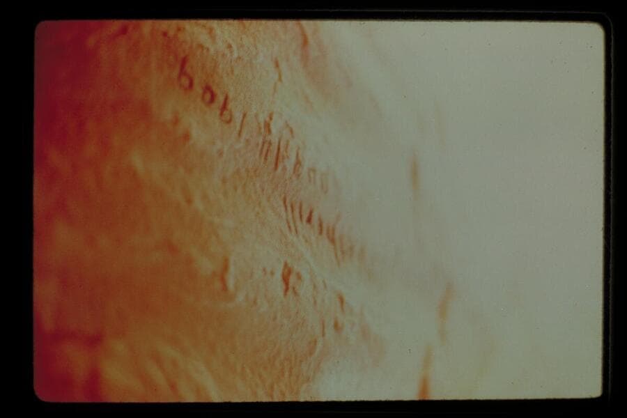 John Wetherill inscription in crack of boulder, Rainbow Bridge