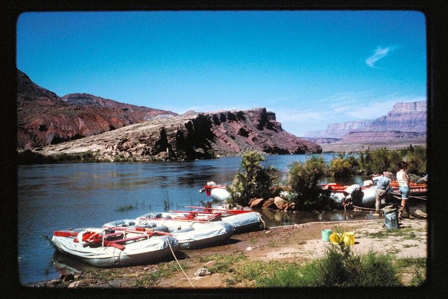 Pushing the bolognas of Ron Smith's outfit into the river at Lees Ferry