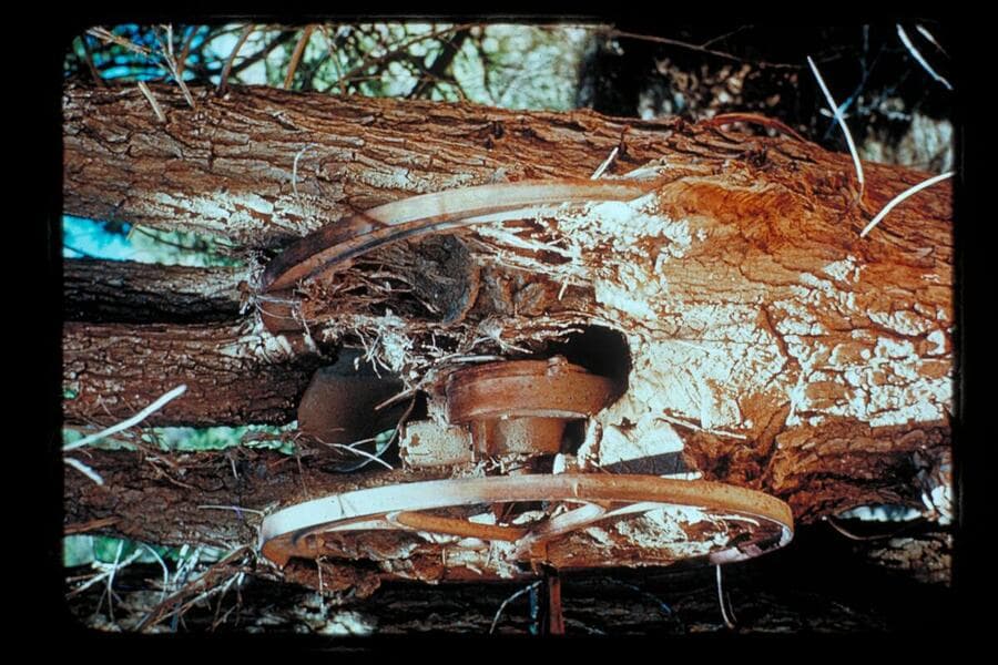 The coffee grinder grown into the cottonwood tree near Lava Creek in Grand Canyon