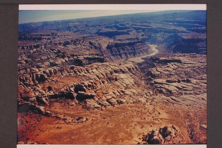 Down Butler or Red Lake Canyon to its mouth. Spanish Bottom at opposite side of the river. Approx. gauge: 30,000 cfs