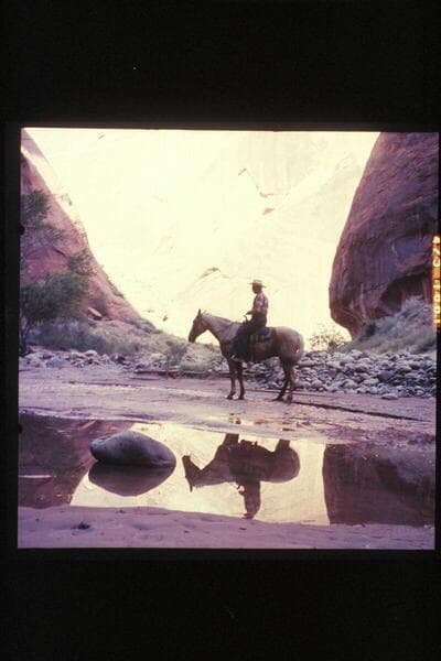 Whitehat, Masland and Mary Abbott check on the packing; mouth of Bridge Canyon