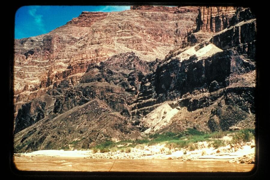 Vulcan's Throne at foot of Tuweep Lava Flows into Canyon; Lava Falls