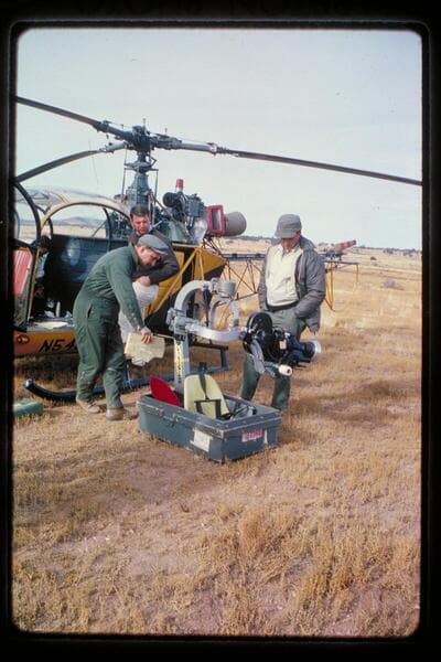 Motion picture camera in chopper follows Garth Marston; 217 Mile Rapid. Wilding camera crew. Sportyak