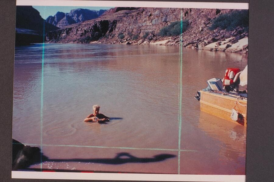Gordon Avil fills canteen from the Silvery Colorado. Camp above Mile 217 Rapid