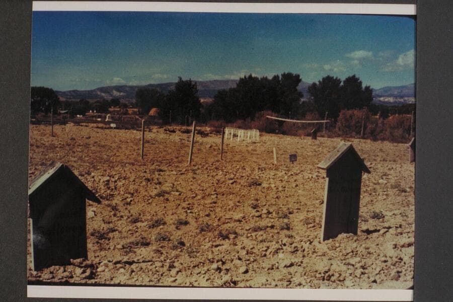 Graves of Galloway and his wife at Vernal cemetery. Marston stands at grave