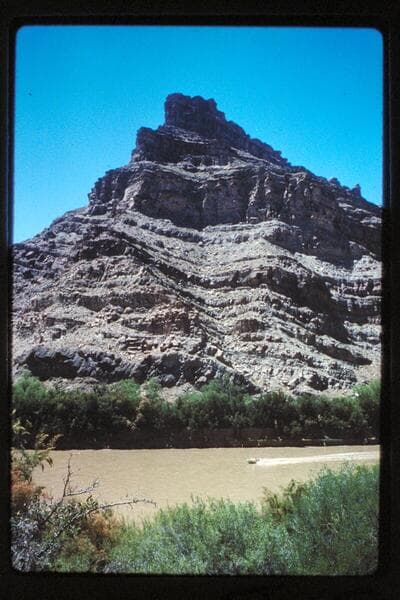 Up Cataract Canyon from Mile 216.5, left bank to the mouth of the Green River. The Green River enters from the left and the Grand River from the right