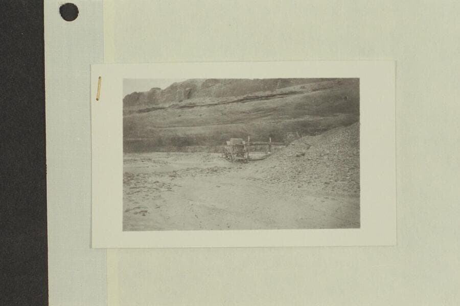 Stone's visit to Glen Canyon. Gold mining operation- waterwheel- gravels