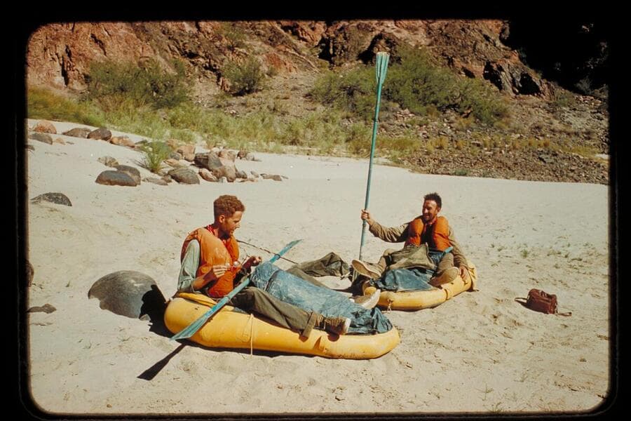 Neal Newby, Jr. and Frank Moltzen with their boats and gear after arrival at Bright Angel Creek