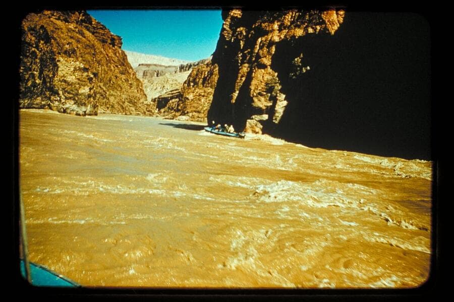 The "Rattlesnake" in Granite Narrows. Rod Sanderson is piloting and Joe Desloge and Hugh Cutler are riding with him