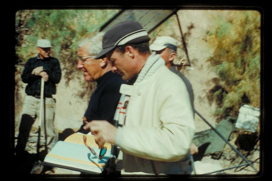 Cameraman Gordon Avil and Script Clerk John Dutton. Filming of Disney's "The Colorado River Story." Below Moab on the Colorado River
