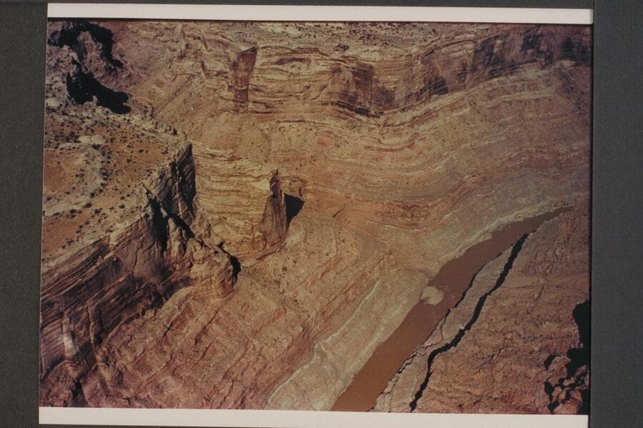 Up Cataract Canyon from the mouth of Cove Canyon at Mile 186.2. The fan at the lower margin is from Cove Canyon