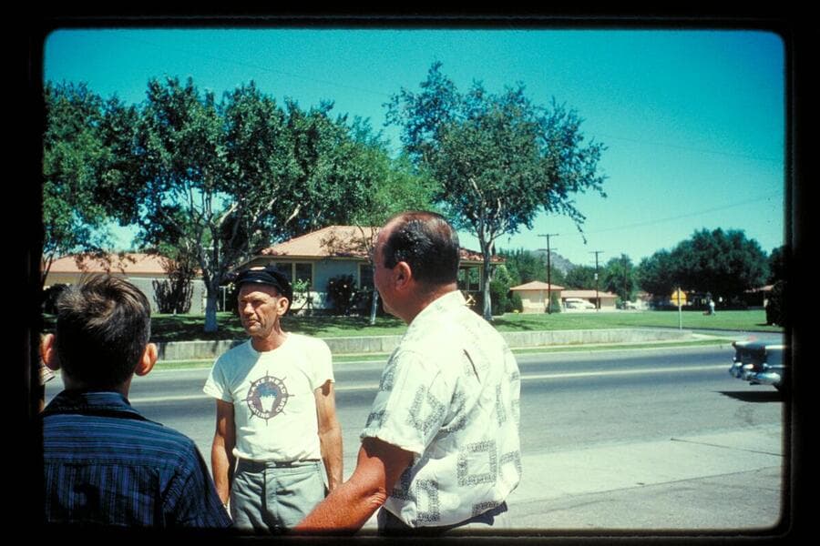 Buzz Belknap piloting the "Cactus" on Lake Mead. Buzz Belknap at the wheel, Jeff Marston, Jim Jordan, Elsie I'Anson and Ed I'Anson