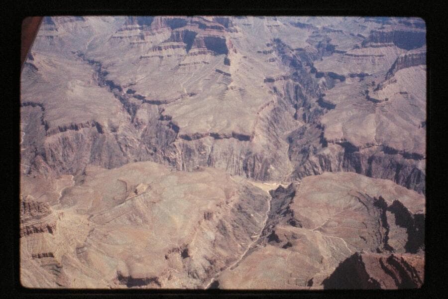 From Tonto Plateau at east side of Slate Creek northeast to Crystal Creek at left, Dragon Head at upper left, Temple of Ra, Osiris