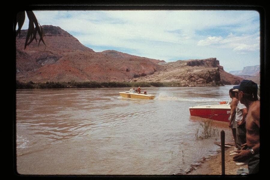 "Big Yellow" cruising near Lees Ferry. Guy Mannering at the controls