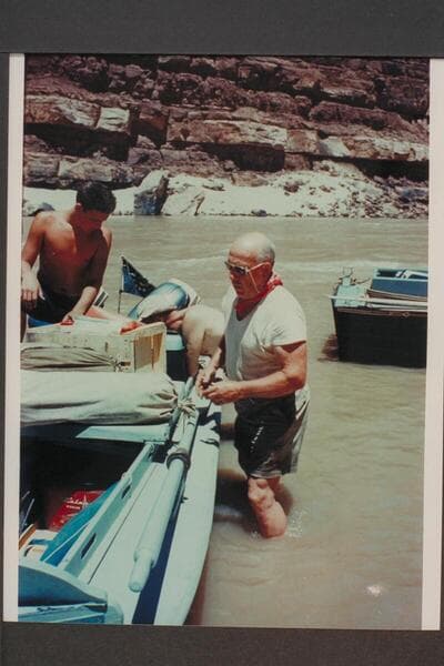 Re-stowing the boats. Buzz Belknap and Bill Clawson. Above Boulder Narrows