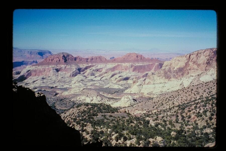 Sixty Mile Point; Escalante Desert; Butte 6069 (Rainbow) from near White Crag Arch
