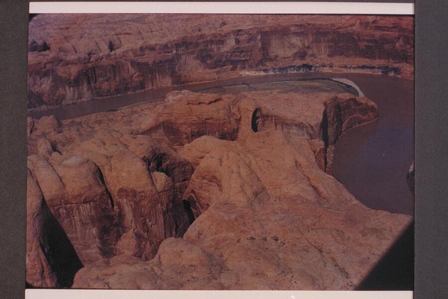 Side canyon in Glen Canyon at Mile 34.4; left bank. Approx. gauge: 31,000 cfs