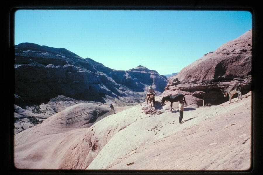 Stock on trail from ledge into basin north of Sid Whiskers Butte