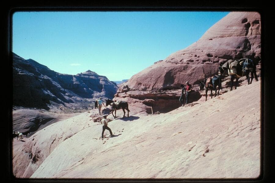 Stock on trail from ledge into basin north of Sid Whiskers Butte