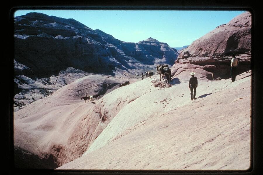 Stock on trail from ledge into basin north of Sid Whiskers Butte