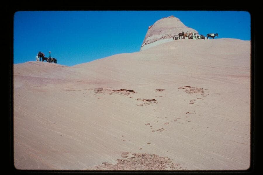 Stock on trail from ledge into basin north of Sid Whiskers Butte
