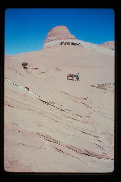 Stock on trail from ledge into basin north of Sid Whiskers Butte