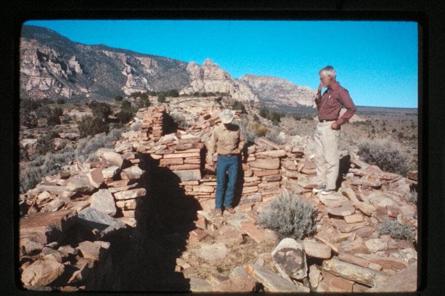 Camp at junction of Anasazi Canyon and the joint which provides entry. Ballard Atherton; Christy Turner; Tom Daly