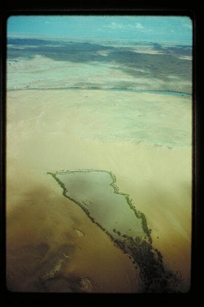 Right bank of Green River at head of Whirlpool Canyon. End of Steamboat Rock at right