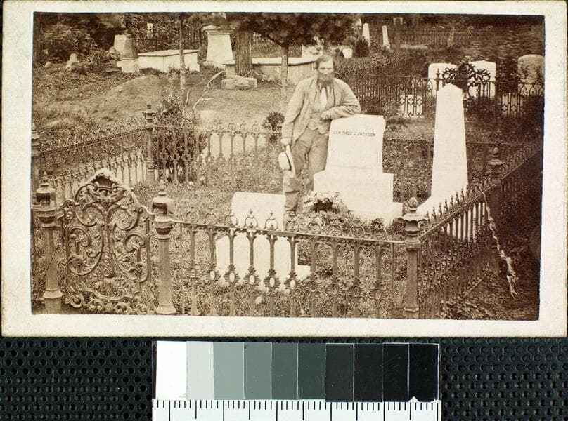 Visitor to the grave of Stonewall Jackson in Lexington, Virginia. (recto)