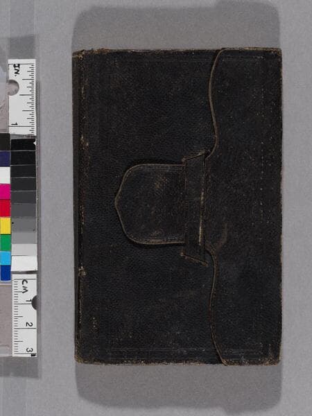 Pocket diary in pencil and pen. Covers a wide range of dates, and includes address, muster lists, as well as diary entries for the Months of August, September and October, 1863. There is a drawing of a dove on the inside back cover.