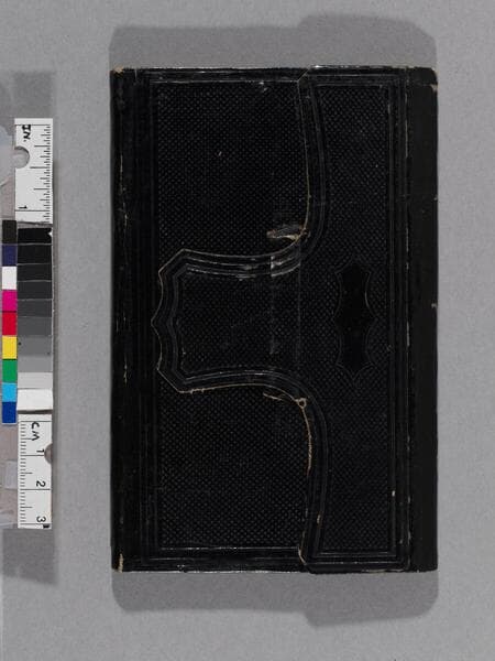 Pocket diary in pencil and pen. Covers a wide range of dates, and includes address, muster lists, as well as diary entries for the Months of August, September and October, 1863. There is a drawing of a dove on the inside back cover.