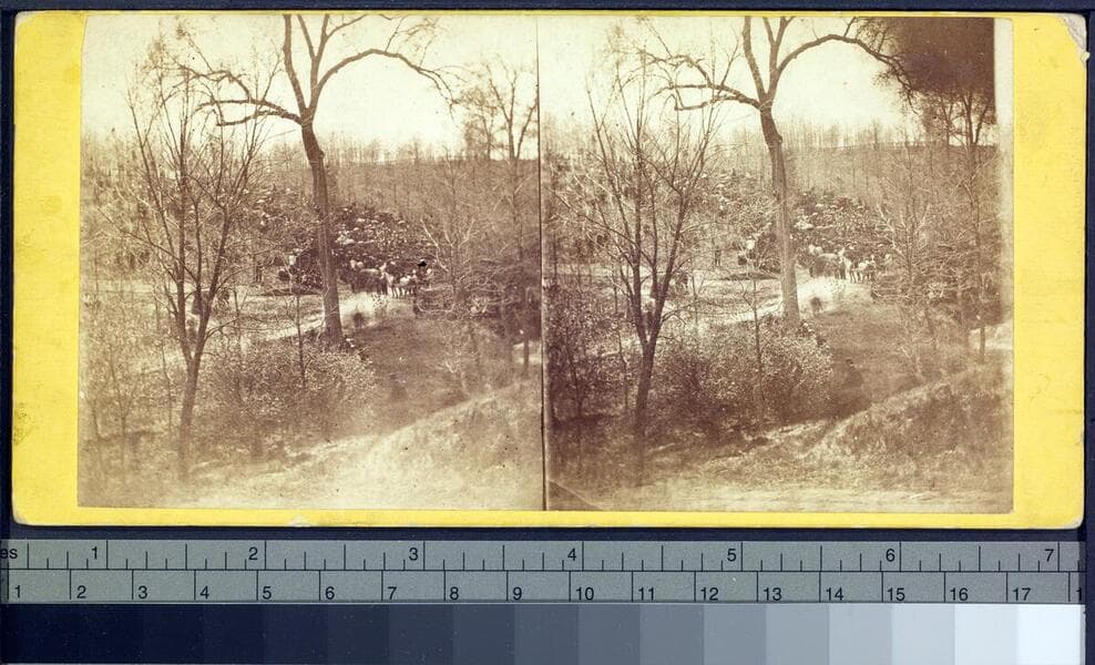 Image of Lincoln's Springfield, Ill., home draped in black. There is a printed paper label along the left edge of the recto side.