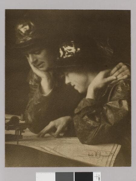 Jack London and Charmian London look at map together.