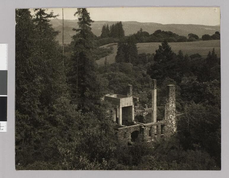 Photograph of architect Albert Farr's rendering of the exterior of Jack London's Wolf House.