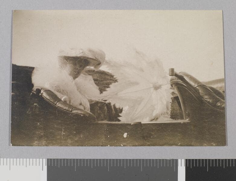 Charmian London sits sidesaddle on draft horse on Jack London Ranch.