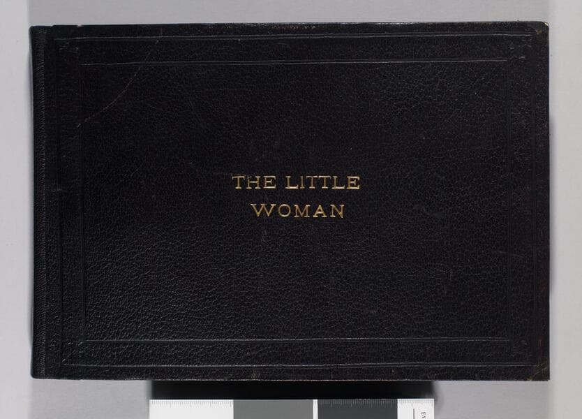 Bound in textured black material. The title, "From West to East 1900-1901 Etc." is embossed on cover in gold. Partial number is affixed to the top of spine in glue. Photos and postcards from Charmian London's trip across the country before her marriage to Jack London.