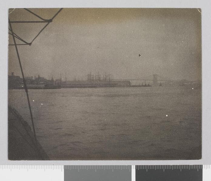 Photo of the skyline and neighborhoods of New York City taken from a bridge.