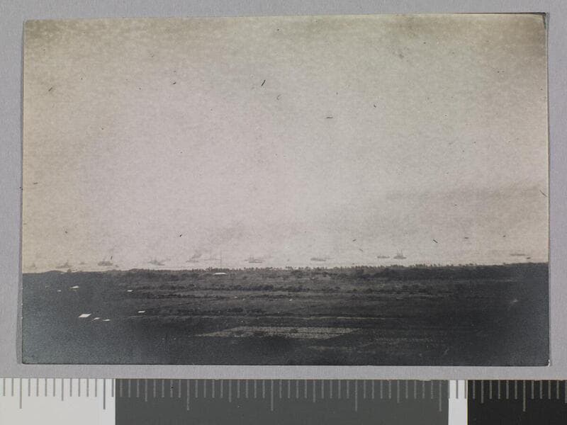 Several US battleships out in open water off the coast of Veracruz, Mexico.