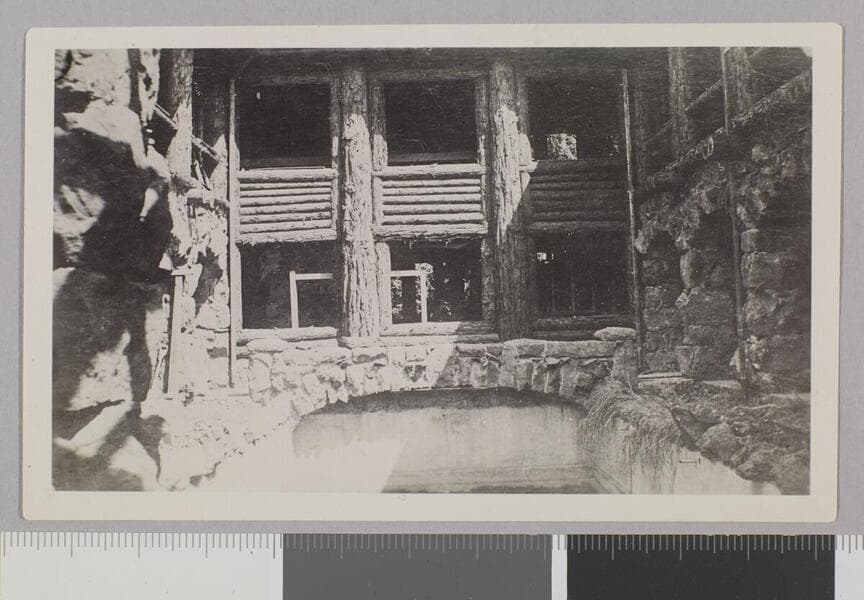 Photograph of architect Albert Farr's rendering of the exterior of Jack London's Wolf House.