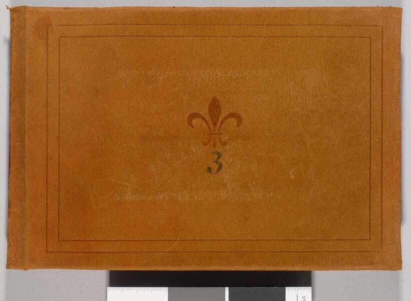 Bound in light brown leather with fleur de lis graphic element design and the number "2" embossed in gold on the cover. The number "2" affixed to spine with glueContains photographs taken by Jack London while on assignment to cover the Russo-Japanese War.