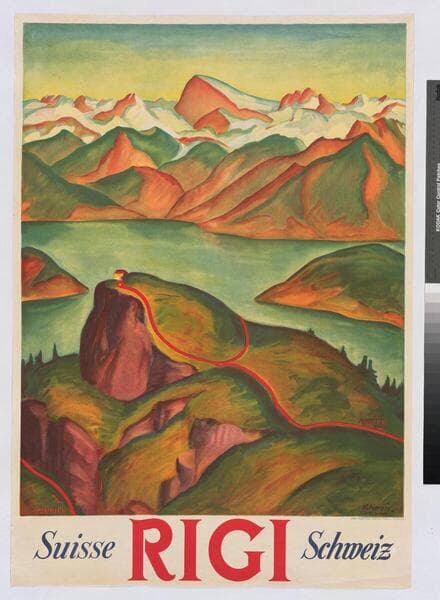 "E. Cardinaux"--artist's signature reproduce in the lower left corner of the image abovge the railroad tracks. "S.B.B."--small type, below title, in red, lower left corner. "Graph. Anstalt J.E. Wolfensberger Zürich"--small type, below title, dark blue, center. Copy can be seen at Swiss National Library (SNL), National Union Catalogues, Posters – Collection of Swiss posters, http://posters.nb.admin.ch/cgi-bin/hi-res/hi-res.cgi?image=SNL_TOUR_1640.jpg