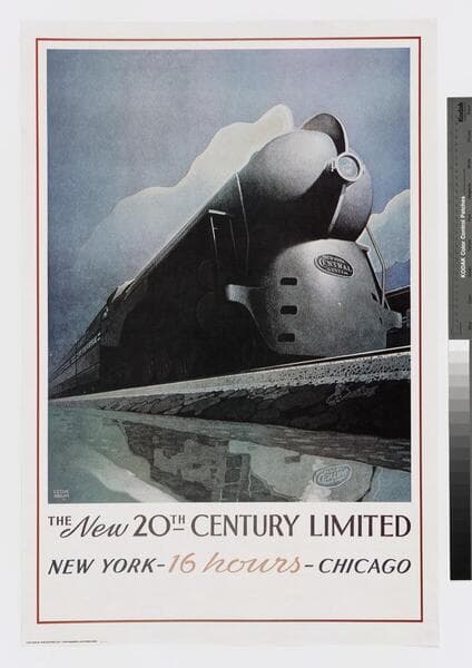 New York Central Railroad Company. The New Twentieth Century Limited / New York - 16 hours - Chicago / New York Central System. [Illustration. Leslie Ragan, artist.]