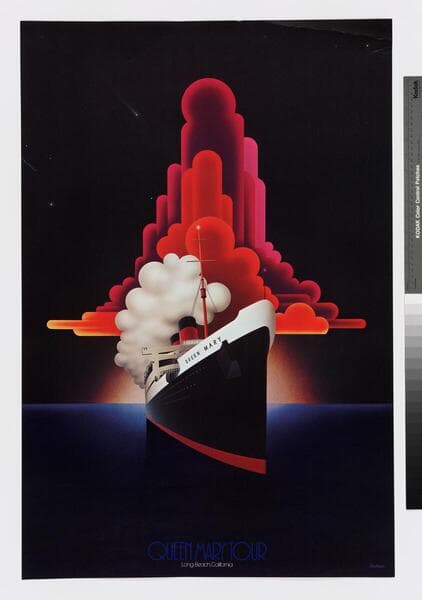 "Frederick J. Hoertz '48"--artists signature in lower right of the image. Title information from priMISC/M KM0492a. Date from signature. This a variant of priMISC/M KM0492a; margins have been cut off and the image affixed to a board and varnished to look like artwork; was once framed. "Galindo Mfg. Co 26 West Broadway New York"--on verso, stamp in brown ink, lower margin center. Measurements are for board. Focus of item: Queen Mary ; Queen Elizabeth.