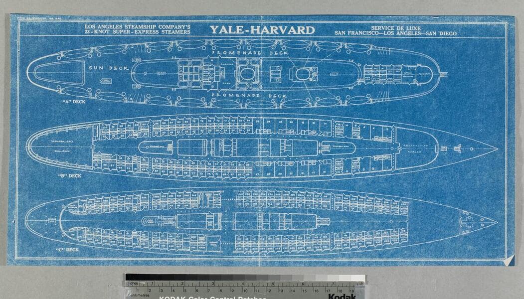 "Times-Mirror Ptg. & Bindg. House--200M 4-30 No. 1304."--printer information on p. [6], lower left corner. Alt. title: Also the LASSCO fleet of luxury liners over the southern route direct from Los Angeles to Hawaii. Promotional pamphlet for coastwise steamship service; included are photos of vessels, sailing schedules, contact and fare information. Focus of item: Yale ; Harvard.